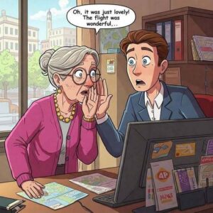 This short narrative paints a vivid and touching scene that explores themes of longing, unfulfilled dreams, and quiet observation. The travel agent, enjoying a successful week, is…